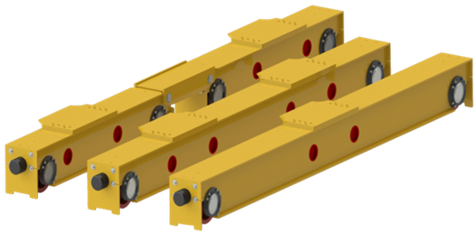 2.每個(gè)端梁配有雙輪緣的車輪、緩沖器和防出軌保護(hù)裝置;