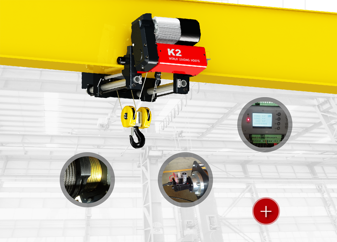 高強(qiáng)鍍鋅鋼絲繩 四級(jí)可調(diào)旋轉(zhuǎn)限位 防松繩大直徑筒,延長鋼絲繩壽命 硬齒面減速機(jī),自重輕 DIN標(biāo)高強(qiáng)T級(jí)吊鉤 電磁盤式制動(dòng)器 防護(hù)等級(jí)IP55,H級(jí)絕緣 過熱保護(hù)、過載保護(hù)、超速保護(hù) |